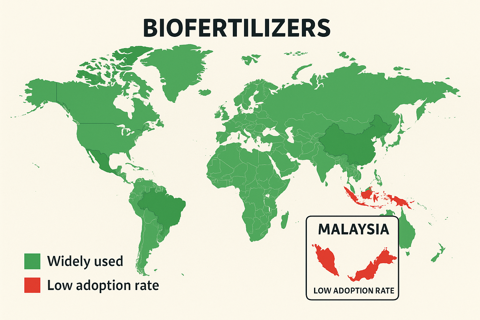 Biofertilizers are widely used in countries like Holland, Spain, India, and South Korea, yet global usage remains below 10%. In Malaysia, adoption is even lower, under 5%. Bio Lestari bridges this gap, providing farmers with sustainable solutions to boost soil health and crop productivity.